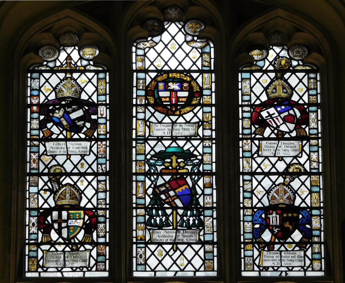Gavin Douglas was probably born between 1474-6. He is variously referred to as Gawin, Gawane and Gawain but never Gavan as far as I know, save in the commemorative window immediately above the entrance to the Savoy Chapel where he was buried. [His arms are those at upper right in the image.] Gavan is a literal Anglicization of the Latin. While one degree short of ‘Gavla’ it still sounds preposterously ‘Smithy-ish’.